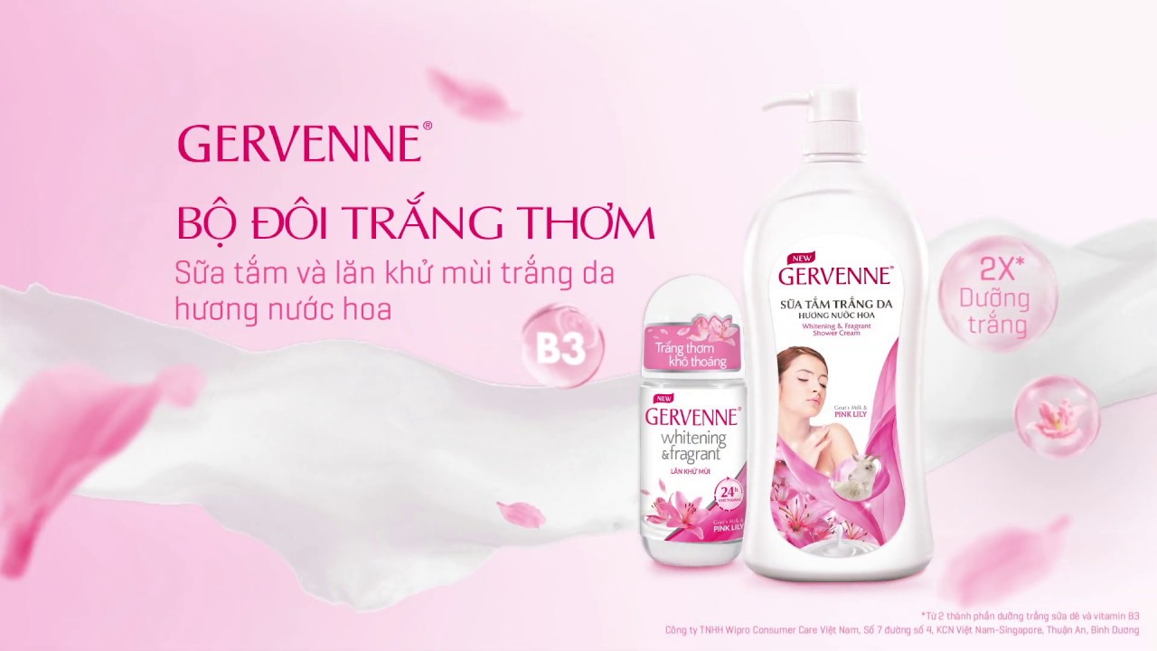 Sữa tắm trắng da hương nước hoa Gervenne mới kết hợp các thành phần thiên nhiên được hỗ trợ bởi công nghệ iWhite-boosting giúp dưỡng trắng, chống nắng, làm sáng và đều màu da. Đồng thời sản phẩm mang lại hương thơm tinh tế và lưu hương dài lâu, từ đó mang lại sự tự tin để nàng thêm tỏa sáng trong cuộc sống hàng ngày.